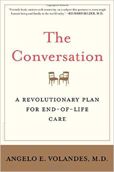 Harvard physician Angelo Volandes has recently come out with his own book, which is in many ways complementary to Gawande’s. In “The Conversation,” Volandes delivers a wake up call to a country where far too many are receiving care that they did not ask for and do not desire. “I think too many people don’t know what’s going on behind those closed doors in hospitals,” he says. “But if they did, they’d be outraged. So many people are getting – not costly care – I’m talking about unwanted care.”